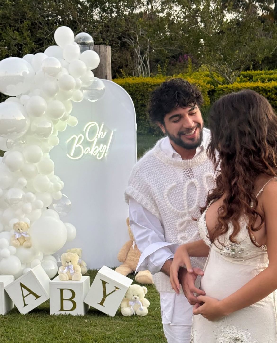 Os dois estão juntos desde o final de 2024, após assumirem o namoro diante de aparições frequentes em shows. O anúncio da gravidez foi feito no começo de junho. “Tem mais um coraçãozinho batendo aqui”, escreveram na legenda da publicação.