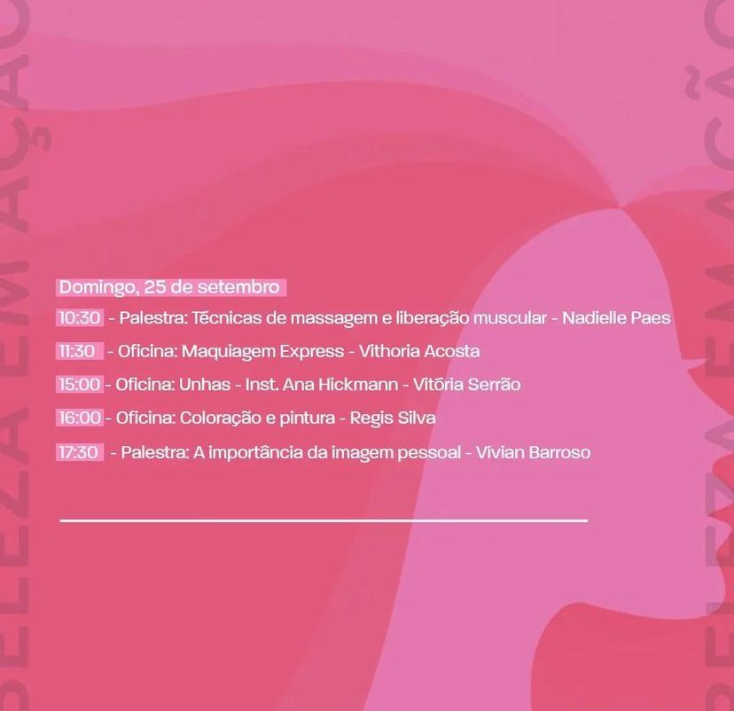 A Feira Beleza em Ação, que acontece no Pavilhão Delta do Centro de Convenções de Teresina (CCT) até este domingo (25), tem programação diversa com palestras e oficinas. A inscrição para o evento deve ser realizada através do site www.sympla.com.