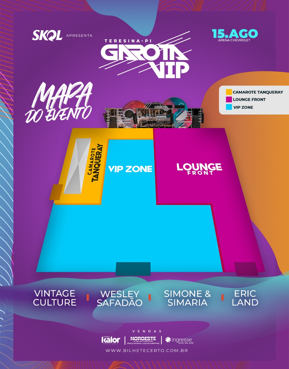 A edição de Teresina é aguardada por milhares de fãs. A procura por ingressos é intensa. O lote promocional foi aberto no dia último 17 de junho e segue até esta quinta-feira (27). O Garota Vip Teresina terá ainda Simone e Simaria, Vintage Culture e Eric Land.