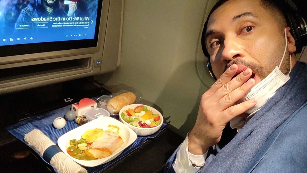 Gil brincou na viajem postando em uma rede social. "Que sonho! Gente, é primeira classe, é fino, é chique", brincou Gil.