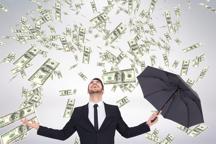 Homem comemorando chuva de dinheiro / Foto - Reprodução