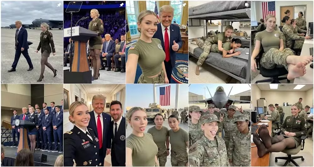 Com aparência frequentemente comparada à da atriz Jennifer Lawrence, a suposta influencer viralizou ao publicar conteúdos em defesa de pautas ligadas ao movimento associado a Donald Trump, incluindo mensagens pró-cristão, pró-Segunda Emenda, pró-vida, antiaborto, anti-woke e anti-imigração. As postagens também incluíam imagens provocantes, como fotos de biquíni com a bandeira dos EUA, cenas pescando no gelo, bebendo cerveja e até simulando uso de armas.