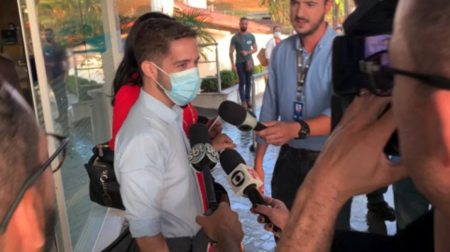 "Tô com saudades de vocês, volto logo", disse Gabriel aos jornalistas que esperavam, na porta.