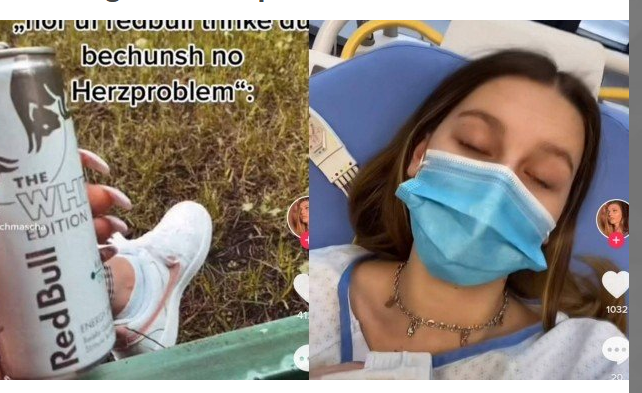A jovem Mascha K., de 17 anos, foi parar em um hospital, em Zurique, na Suíça, após ter desmaiado. Ela sentiu fortes dores no coração no último dia 16 deste mês. Segundo a jovem, o problema foi causado devido ao consumo em excesso de um energético. Algo em torno de 12 latas por dia em média.