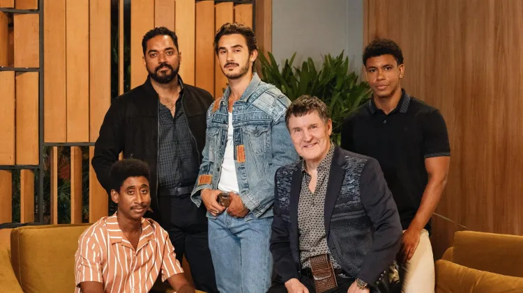 Ronei (Thomás), João Raul (Filipe Bragança), Walmir (Antonio Calloni), Luan (Lucas Wickhaus), Agildo Bara (Evaldo Macarrão) em 'Coração Acelerado'Leandro Brasil (David Junior)