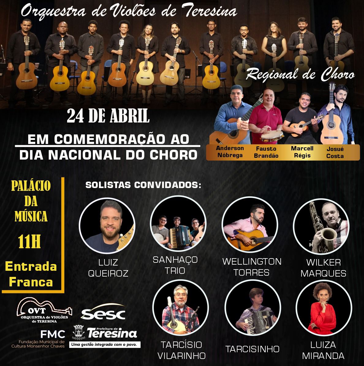 Além da OVT, o público também contará com outras apresentações artísticas de Teresina, como Anderson Nóbrega (violão 7 cordas), Josué Costa (violão), Marcell Régis (cavaquinho) e Fausto Brandão (pandeiro), além de convidados especiais como Luiza Miranda, Wilker Marques, Tarcísio Vilarinho, Wellington Torres, Luiz Queiroz e Trio Sanhaço, trazendo grandes clássicos do repertório.