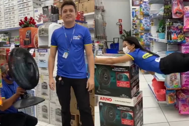 “Na quarta, um amigo meu me mandou um vídeo de uma loja de Roraima. Eu gostei e decidi fazer um igual. A loja não era daqui e ninguém tinha feito no Nordeste. No outro dia movimentei a equipe e foi até difícil, porque tinha colaboradores de atestado. Eu queria fazer cedo para fazer primeiro. Mas fiz diferente, fiz com o ventilador ligado, não frisando a marca. O vídeo foi rápido, coisa de sete segundo e viralizou total”, disse.