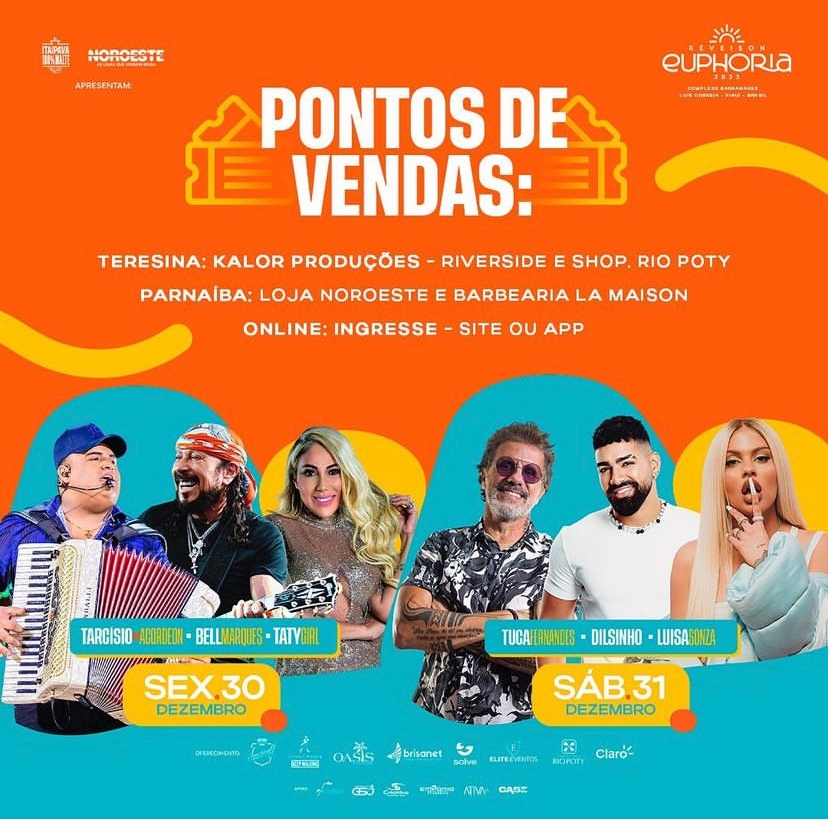 A cerveja Itaipava 100% Malte e as lojas Noroeste apresentam o réveillon Euphoria. O evento conta com o patrocínio da Smirnoff, Johnnie Walker, Oásis Distribuidora, Brisanet, Solve Tecnologia, Elite Eventos, Shopping Rio Poty e Claro. O apoio fica por conta da Natuarte, Gráfica GSJ, Criativa Comunicação Visual Ativa Comunicação e Case Produções.