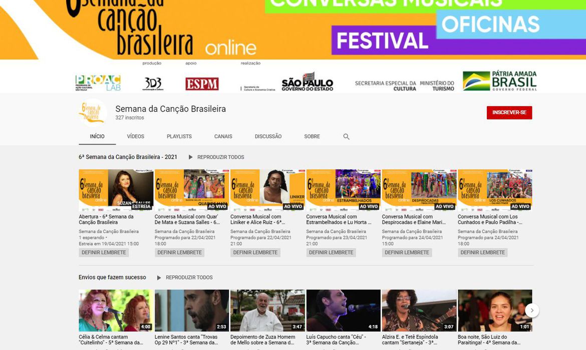 Começa hoje(19), a 6ª Semana da Canção Brasileira. O evento que teve início em 2007, acontece na estância turística de São Luiz do Paraitinga (SP). Este ano será totalmente virtual, no canal do YouTube com acesso livre.