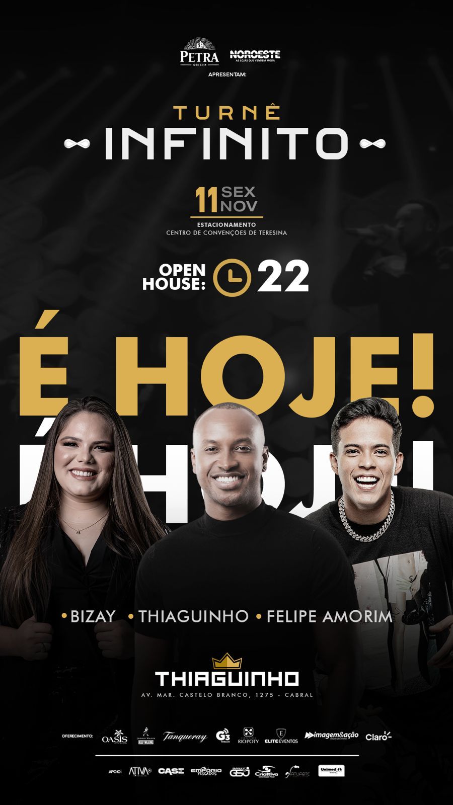 Thiaguinho está de volta a Teresina nesta sexta-feira (11), com o show “Infinito”. Já disponível nas plataformas, o projeto traz 38 faixas, entre composições inéditas e regravações de sucessos do próprio artista. O evento ocorrerá a partir das 22h, no estacionamento do Centro de Convenções de Teresina, localizado na Avenida Marechal Castelo Branco.