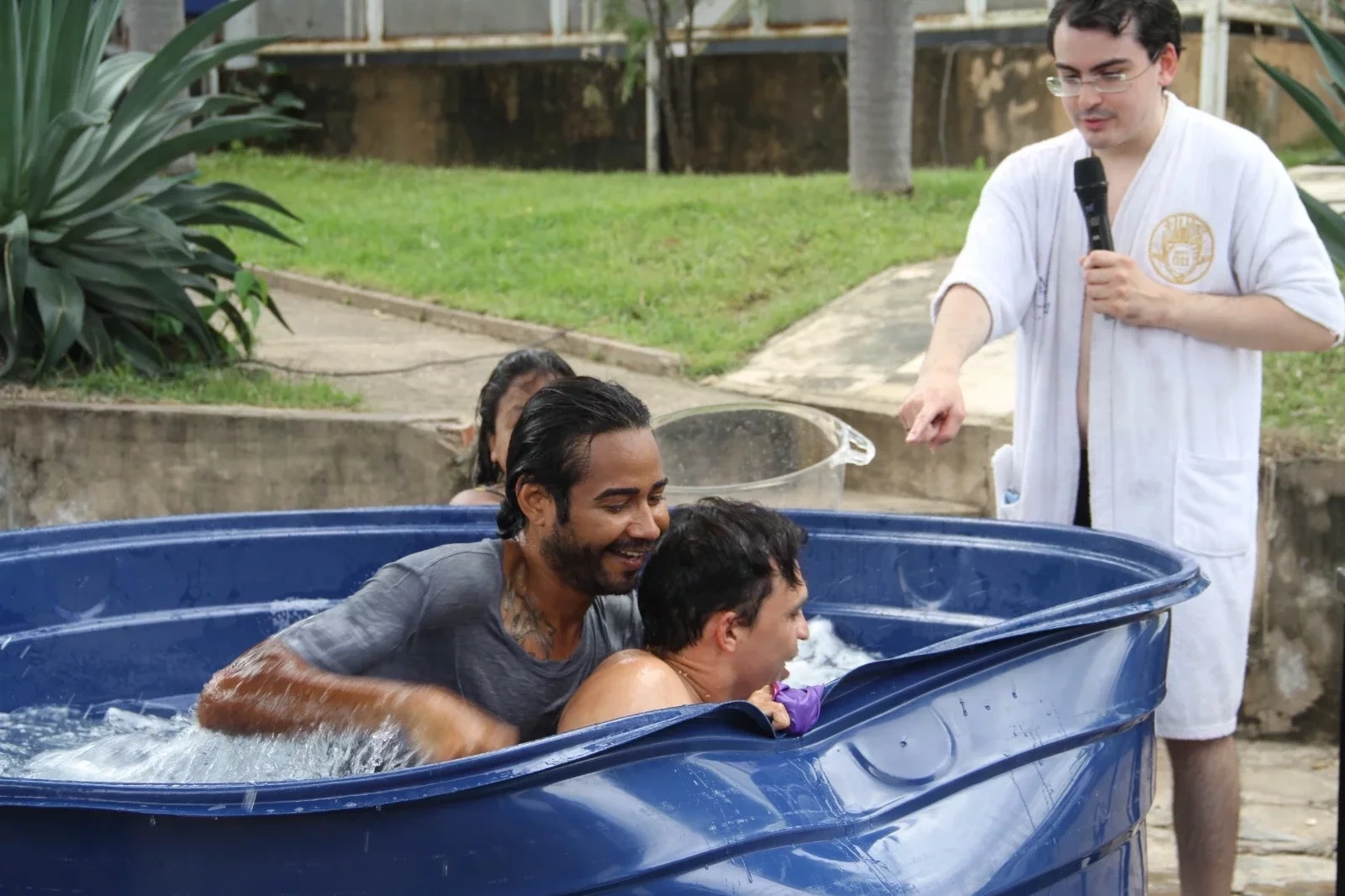 O apresentador Dudu Camargo, da TV Meio, estreou seu novo quadro neste sábado (27) durante o programa Ronda. Segundo ele, a 'Caixa d' Água do Dudu' é uma referência e homenagem à clássica “Banheira do Gugu”, que era conduzida pelo apresentador Gugu Liberato, que faleceu em novembro de 2019, nos anos 90.