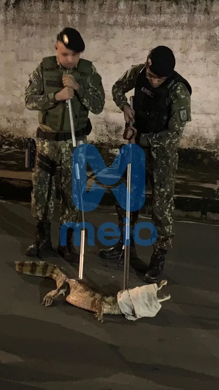 🐊 ALERTA: Os policiais relataram que nessa época do ano é muito comum encontrar animais como jacarés e jiboias de até 6 metros próximo a residências na capital.