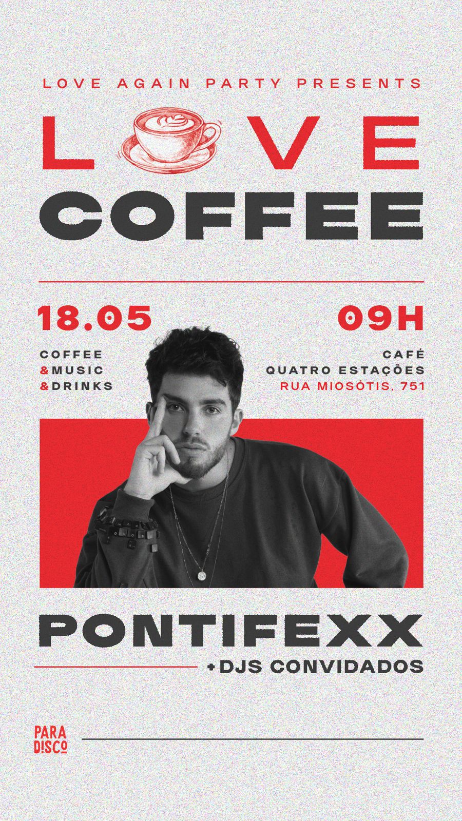 No próximo domingo (18), às 9h da manhã, você tem um encontro marcado no Café Quatro Estações, na Rua Miosótis, 751, para viver uma experiência única: um café da manhã delicioso ao som de Pontifexx e DJs convidados, em uma atmosfera leve, descontraída e sem pressa — como um verdadeiro encontro entre amigos.