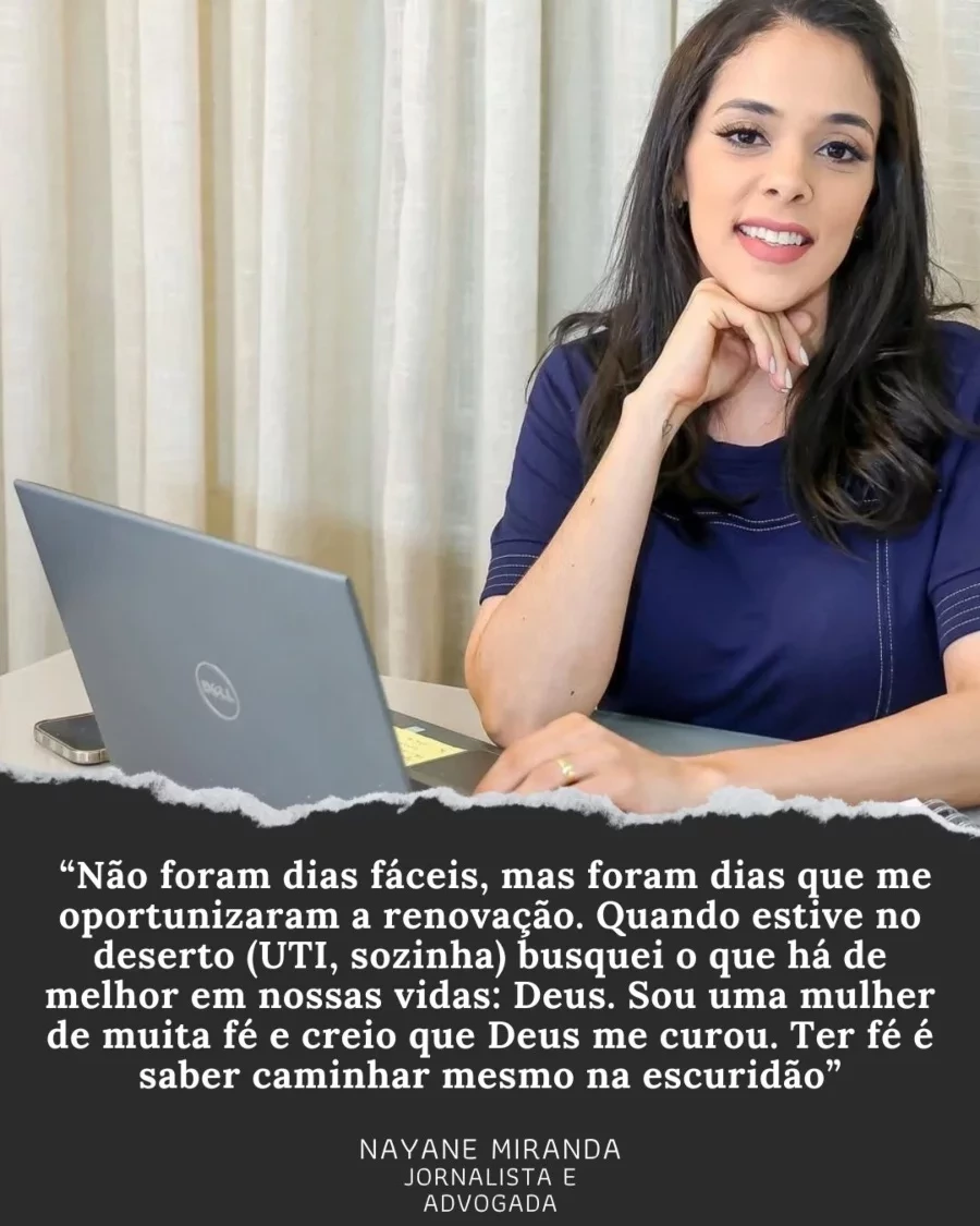 Advogada e jornalista, Nayane Miranda vivia um momento único e especial: feliz, casada e com um filho recém-nascido, ela seguia o fluxo normal da rotina, conciliando as responsabilidades do trabalho, as atividades físicas e, agora, a nobre missão de ser mãe.