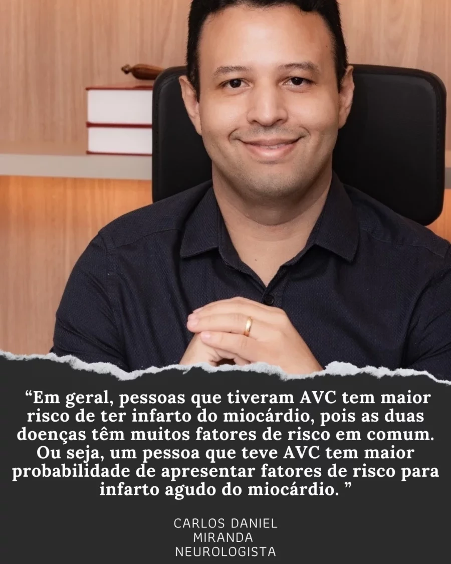 O neurologista Eduardo Borges também aponta os diversos fatores de risco comuns ao AVC e ao infarto, reforçando a importância de se atentar aos sinais.