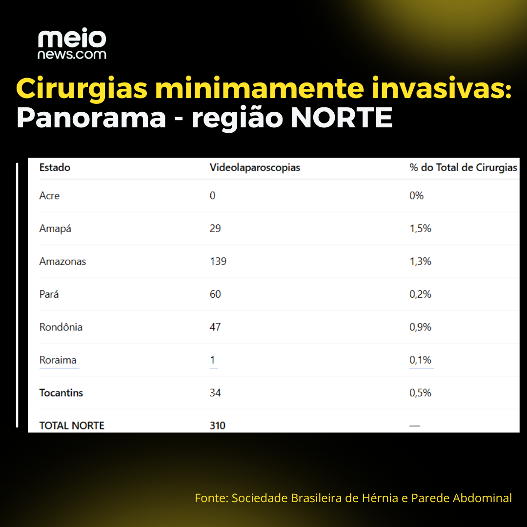 Com base nas informações catalogadas pela Sociedade Brasileira de Hérnia e Parede Abdominal junto ao Ministério da Saúde, o MeioNews fez um cruzamento das tabelas e conclui em Estados do Norte, como Acre e Roraima, as videolaparoscopias na rede pública são raras.
