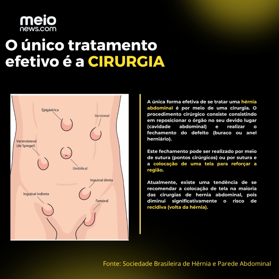 O médico aponta ao MeioNews que não existe tratamento conservador para hérnias, explicando que 'pode-se até observar durante um tempo, mas, quando houver indicação, o tratamento será cirúrgico'.