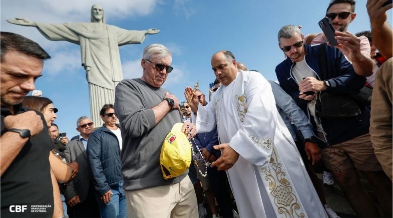 A visita ao ponto turístico e religioso mais famoso do país marca simbolicamente o início da trajetória de Ancelotti no comando da Seleção. O técnico foi apresentado oficialmente no início da semana e divulgou a primeira convocação para os próximos jogos das Eliminatórias da Copa do Mundo.