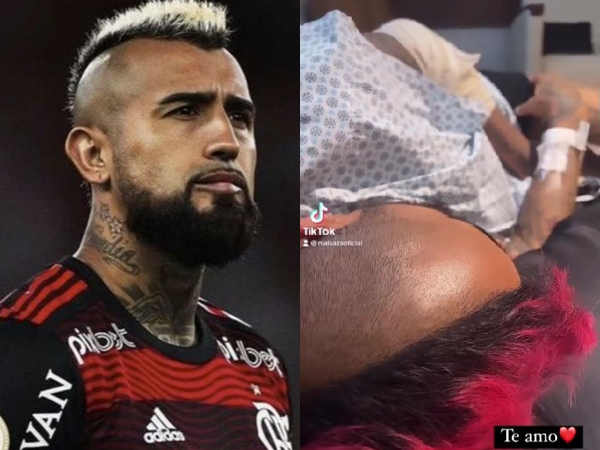 O volante Arturo Vidal foi filmado, nessa terça-feira (11), no colo da esposa Sonia Isaza após realizar cirurgia no cotovelo. O jogador do Flamengo segue internado desde o último sábado (08), no Rio de Janeiro.