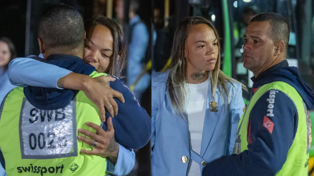 Pai e filha trocaram beijos, abraços e carinhos. Os dois tiveram alguns minutos para se despedir, posaram para fotos e puderam se ver antes que a atacante se juntasse ao resto do elenco no avião que levou a delegação para a Copa do Mundo.