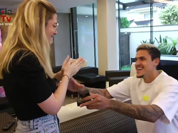 O atacante Pedro, 25, do Flamengo, aproveitou a festa por sua convocação para a Copa do Mundo no Qatar para pedir sua namorada, a psicóloga Fernanda Nogueira, em casamento.