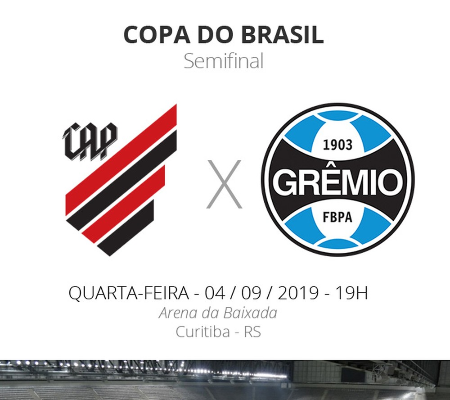 Athletico e Grêmio decidem quem será o primeiro finalista da Copa do Brasil de 2019 a partir de 19h desta quarta-feira, na Arena da Baixada. O Tricolor gaúcho tem a vantagem após ter feito 2 a 0 na ida. Com informações do Globo Esporte.