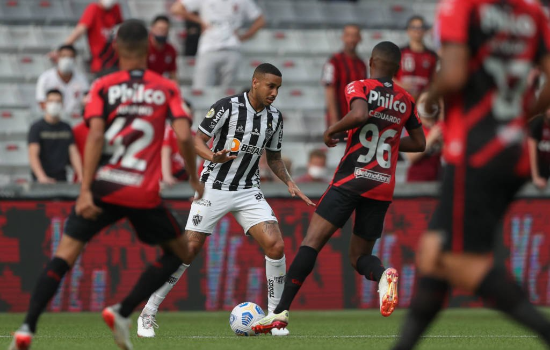 Em uma delas, o atacante recebeu ótimo lançamento pelo campo de defesa, driblou o marcador com belo movimento, mas, cara a cara com Everson, não conseguiu alcançar a bola para fazer a finalização.