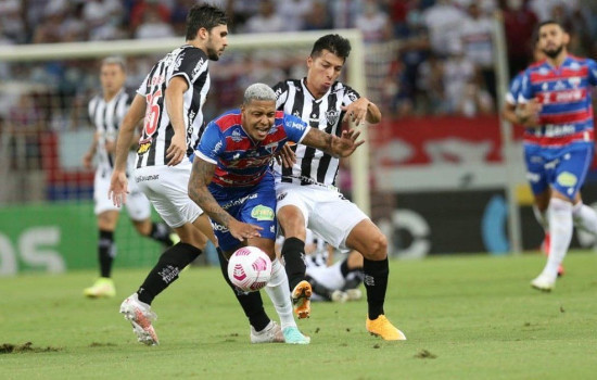 Já o Fortaleza tentou pressionar o Atlético desde o primeiro minuto, em busca de uma virada improvável. Mesmo tendo mais a bola e roubando muitas bolas no campo de ataque, o Tricolor cearense teve dificuldade para superar a forte defesa visitante e não criou grandes chances no primeiro tempo.
