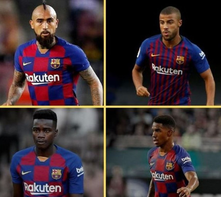 A lista? Três jogadores do atual elenco: o meia chileno Arturo Vidal, o lateral-esquerdo Junior Firpo e o lateral-direito português Nelson Semedo. E os outros três são atletas que se encontram emprestados: o zagueiro Todibo (Schalke), o meia brasileiro Rafinha (Celta) e o lateral-direito senegalês Moussa Wague (Nice).