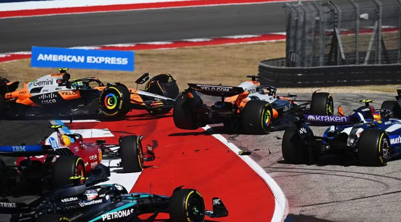 A largada da corrida sprint do Grande Prêmio dos Estados Unidos, neste sábado (18), foi marcada por um acidente logo na primeira curva do Circuito das Américas. A curva 1, conhecida pelas disputas intensas devido à sua subida acentuada, mais uma vez gerou polêmica e acabou envolvendo quatro pilotos: Lando Norris, Oscar Piastri, Fernando Alonso e Nico Hulkenberg.