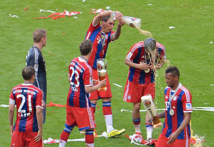 Neste sábado, o Bayern de Munique venceu o Stuttgart por 1 a 0, com gol de Pizarro, na Allianz Arena, e enfim levantou a taça do Campeonato Alemão. Após o jogo, porém, os jogadores e o treinador Pep Guardiola fizeram uma "guerra" com os copos de cerveja recebidos durante a premiação.