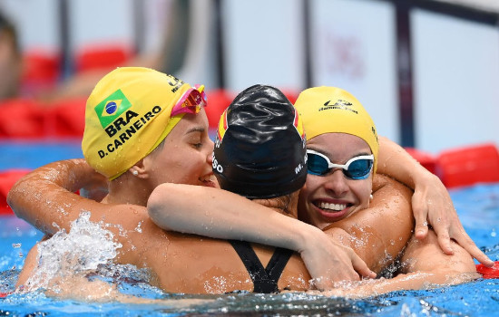 Debora havia sido medalhista de bronze no Campeonato Mundial de natação paralímpica em 2019, em Londres. Mas, neste domingo, quem subiu ao pódio foi a irmã.
