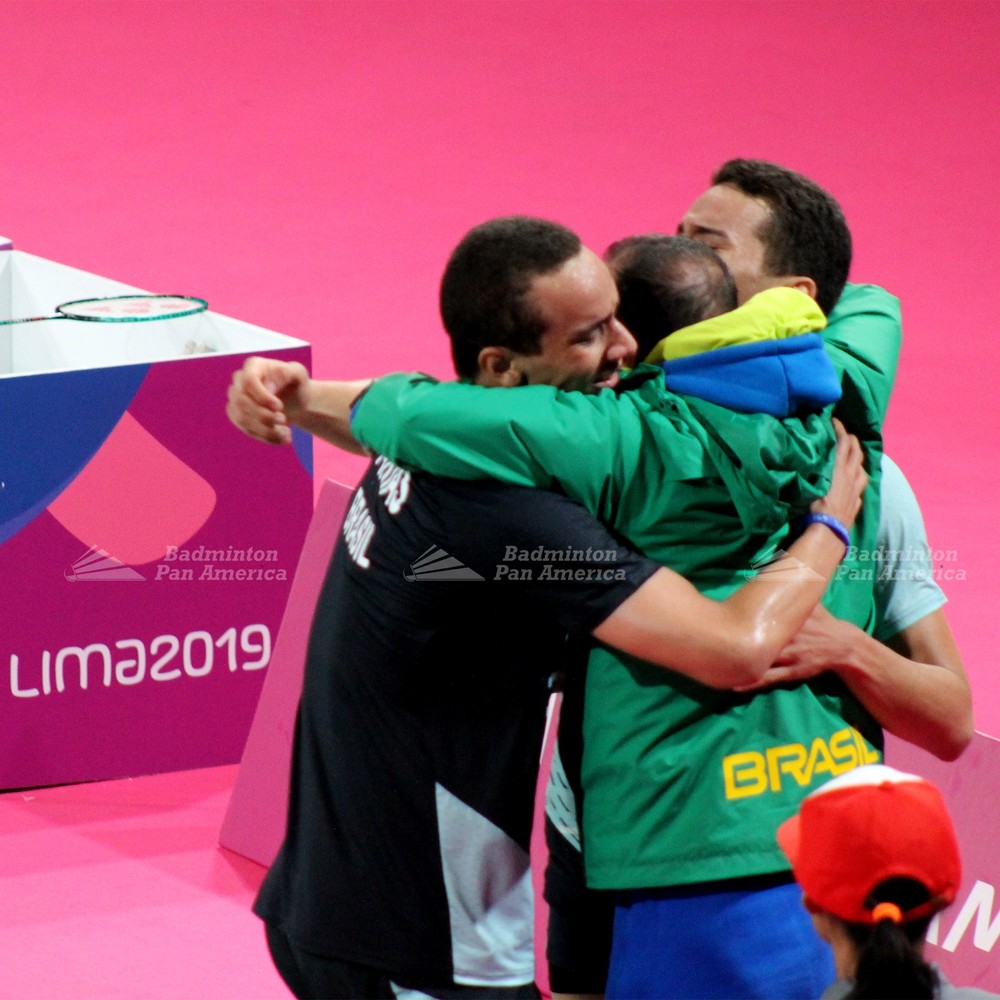 Irmãos Farias comemoram vaga na semifinal e bronze — Foto: Badminton Pan Am