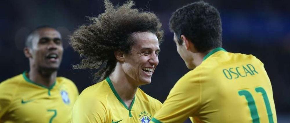 O Brasil voltou com outra postura no segundo tempo. De dominado pela Áustria, passou a controlar mais a posse de bola e, com isso, diminuiu o ímpeto dos europeus. A melhora nacional, somada às entradas de Douglas Costa na vaga de Wllian e principalmente de Firmino na vaga do sumido Luiz Adriano, rendeu frutos aos 18min. Em cobrança de escanteio de Oscar, David Luiz apareceu sozinho e cabeceou no chão para abrir o placar para a Seleção.