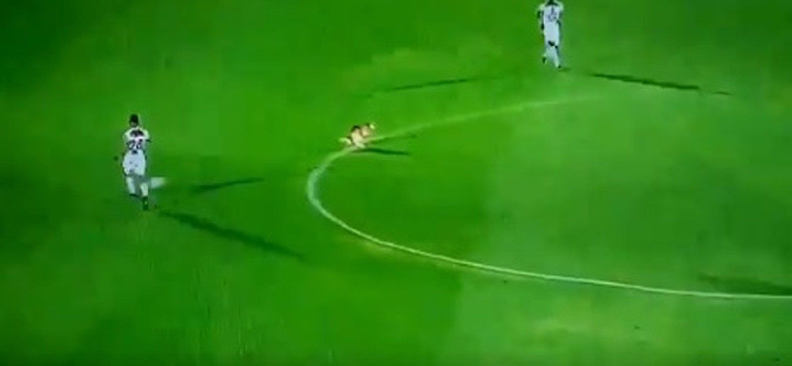 O cão conseguiu se aliviar tranquilamente praticamente em cima da linha do grande círculo. Depois, se esquivou de mais de três pessoas que tentavam capturá-lo e a partida teve de ser interrompida por alguns minutos.