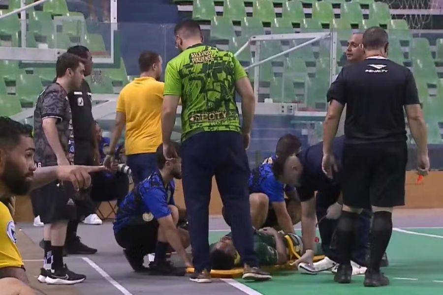 Um lance preocupante marcou a vitória do Atlético-PI por 6 a 0 sobre o Juventude-MS, na Arena Verdão, em Teresina, pela segunda rodada do Campeonato Brasileiro de Futsal. Jé, pivô do time piauiense e campeão mundial com a seleção brasileira em 2012, sofreu uma concussão após cair e bater a cabeça na quadra. O jogador precisou ser retirado de maca e encaminhado ao Hospital de Urgência de Teresina (HUT).
