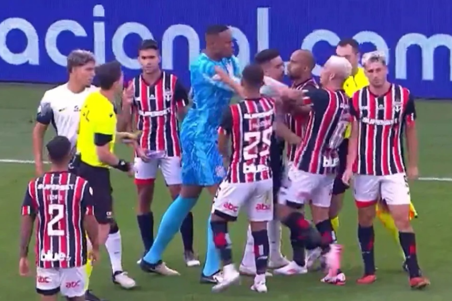 A confusão entre os jogadores começou após o segundo gol do São Paulo. Carlos Miguel empurrou Calleri, e Luciano saiu em defesa do companheiro, gerando um bate-boca entre os atletas. Na sequência, o camisa 10 do São Paulo partiu para cima do goleiro corinthiano, precisando da intervenção de outros jogadores para acalmar os ânimos. Ambos receberam cartões amarelos do árbitro Ramon Abatti Abel.
