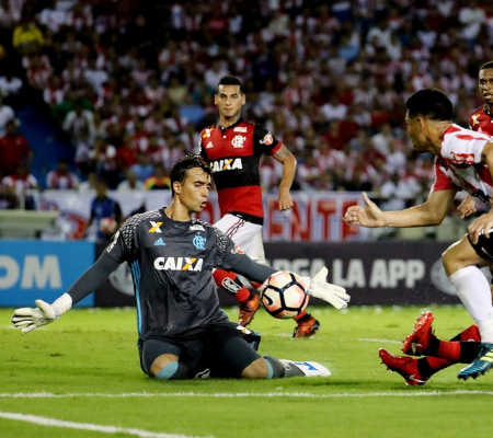 Já em 2017, na semifinal da Copa Sul-Americana, contra o Junior Barranquilla, na Colômbia, Diego Alves, dono da posição, se lesionou, Muralha não vivia um bom momento e Reinaldo Rueda, então treinador do Flamengo, decidiu por apostar no jovem goleiro, que estava sem atuar há mais de um ano.