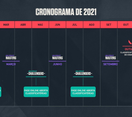 A Riot Games anunciou nesta terça-feira como será o cenário competitivo de Valorant no próximo ano. O circuito profissional do FPS, batizado de Champions Tour, terá três tipos de competições: as de acesso (Challengers), as regionais (Masters) e um mundial (Champions) a ser realizado em dezembro. O Brasil tem duas vagas garantidas no mundial e pode chegar a ter três equipes na competição. Informações do site GloboEsportes.com