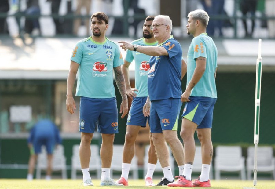 Com a chegada de Marquinhos, Raphinha, Beraldo e Abner, Dorival Júnior finalmente pôde trabalhar com o elenco completo da Seleção Brasileira nesta terça-feira (8), no centro de treinamento do Palmeiras, em São Paulo. A Seleção Brasileira tem compromisso nesta quinta-feira (10). O jogo será contra o Chile, em Santiago, pela 9ª rodada das Eliminatórias para a Copa do Mundo de 2026.