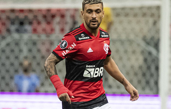 Jogador teve um estiramento na coxa esquerda e teve q deixar o campo. (Foto: ALEXANDRE VIDAL - FLAMENGO)No dia seguinte, o Flamengo informou que um exame constatou estiramento na região posterior da coxa esquerda do uruguaio. Arrascaeta só retornou ao time titular no jogo da volta da semifinal da Libertadores, contra o Barcelona de Guayaquil. Nesta noite, contudo, o uruguaio levou às mãos à coxa direita. No Flamengo, o substituto imediato de Arrascaeta tem sido Vitinho, que foi titular no jogo contra o Red Bull Bragantino.