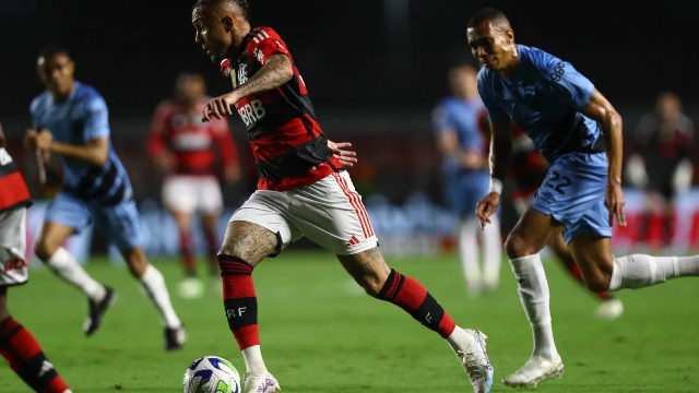 Logo em seguida, Gabigol foi expulso após um lance revisto pelo VAR, quando acertou um adversário com um movimento brusco de braço. Com um jogador a menos, a situação do Flamengo ficou pior ainda.