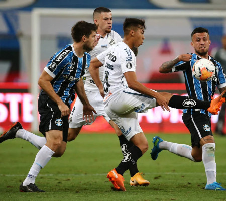 O Santos empatou com o Grêmio em 1 a 1 a noite desta quarta-feira, em Porto Alegre, pelo jogo de ida das quartas de final da Libertadores da América. Os gols foram marcados por Kaio Jorge e Diego Souza.