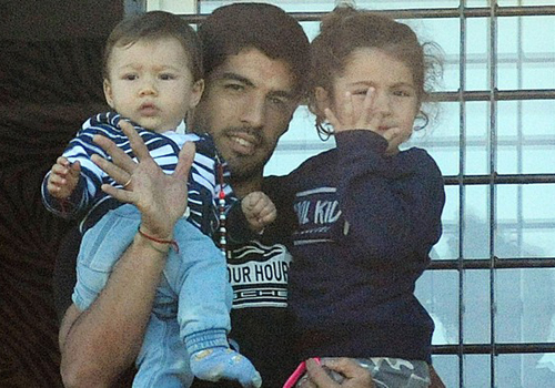 Suspenso pelo Comitê Disciplinar da Fifa por nove jogos, o uruguaio Luis Suárez chegou nesta madrugada ao Uruguai e está em casa com a família. Na tarde desta sexta-feira, enfim, o atacante retribuiu o carinho da torcida celeste. Assim que um grupo de torcedores começou a cantar o hino do Uruguai, Suárez apareceu na varanda da residência com os flhos Benjamin e Delfina no colo. Por volta das 12h (horário local), ele acenou para fãs e jornalistas presentes no local, mas não fez qualquer pronunciamento. As informações são do site Ovación Digital.
