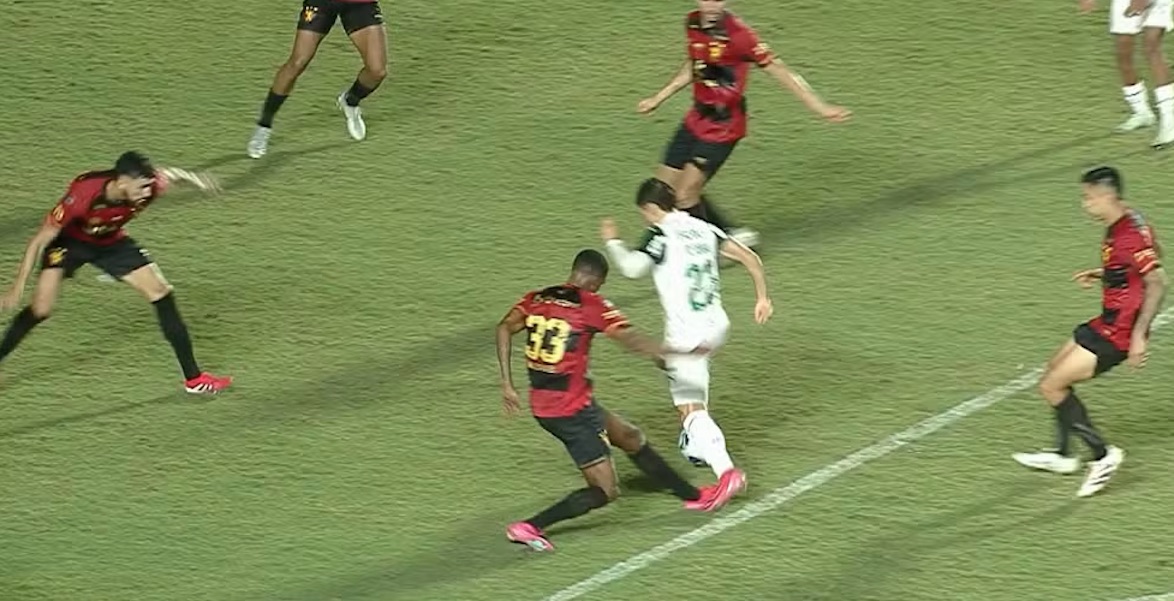 Segundo o parecer técnico, “o defensor toca claramente na bola e não faz nenhum movimento adicional que justifique a infração marcada. O contato é acidental, fazendo com que a bola atinja a perna direita do atacante, desequilibrando-o e provocando a queda — uma situação clara para intervenção do VAR”.