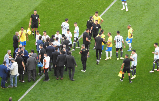 A Conmebol informou, por meio de nota, na tarde de domingo, a suspensão do jogo entre Brasil e Argentina, e acrescentou que caberá à Fifa decidir o futuro do confronto. A partida, válida pelas Eliminatórias da Copa, foi suspensa pela Agência Nacional de Vigilância Sanitária (Anvisa) por quebra de protocolos sanitários por quatro jogadores argentinos.