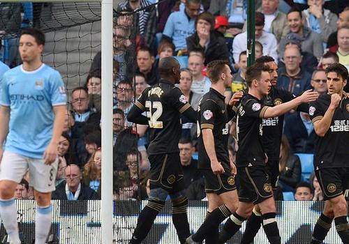 O que parecia impossível aconteceu no City of Manchester neste domingo. Os donos da casa foram derrotados por 2 a 1 pelo Wigan, da Segunda Divisão inglesa, e deram adeus à disputa da Copa da Inglaterra. Com os gols de Jordi Gomez, de pênalti, e Perch, os visitantes conquistaram uma vaga na semifinal do torneio e vão encarar o Arsenal, no dia 13 de abril, em Wembley.