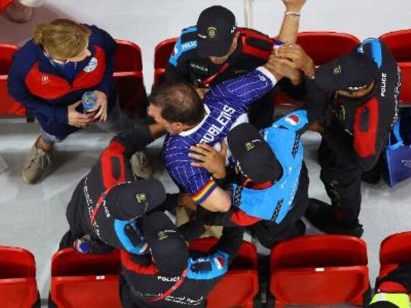 Pelo registro da agência Reuters, cinco policiais qataris levam o torcedor para fora das arquibancadas. Outros dois acompanham a cena sem encostar no americano.