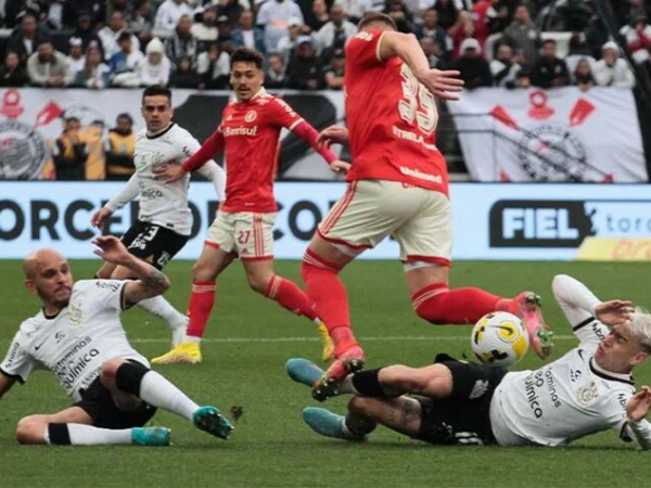 Embora o ritmo tenha caído depois da virada corintiana, o Colorado ainda acertou bola na trave com Mauricio. A equipe paulista respondeu, mas Róger Guedes perdeu chance claríssima de ampliar.