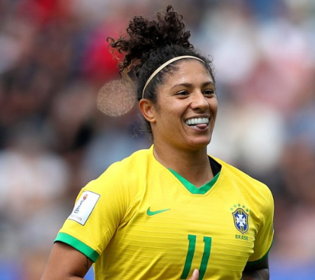 Em sua estreia na Copa do Mundo de Futebol Feminino, a seleção brasileira venceu neste domingo (9) a Jamaica pelo placar de 3 a 0, gerando muitos comentários dos fãs de esporte no Twitter. Autora dos três gols brasileiros na vitória, a atacante Cristiane foi a jogadora mais mencionada em Tweets sobre o jogo globalmente, seguida pela goleira Bárbara, a meia Andressa Alves (@10andressaalves), a volante Formiga e a atacante jamaicana Cheyna Matthews.